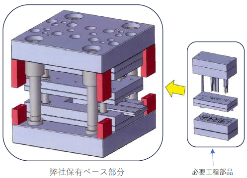 標準ベース使用による試作金型の低コスト、短納期の提案(インサート成形金型)